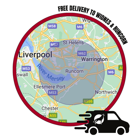 We offer free local delivery to Widnes & Runcorn, spend over £50 and delivery is free to all areas covered!